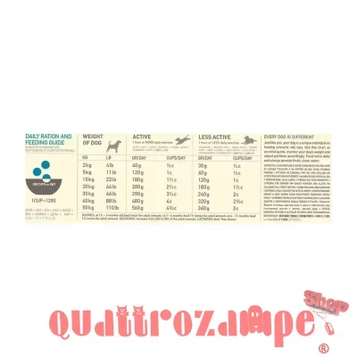 Attenzione: Queste quantità rappresentano solo delle linee guida. Per aiutare a mantenere il tuo cane nella condizione corporea ideale, adattare le quantità di cibo giornaliere a seconda del livello di attività, condizione fisica e dei bisogni individuali del tuo amico a quattro zampe. Lasciare sempre a disposizione acqua pulita e fresca. Per tenere sotto controllo la salute del tuo cane consultare regolarmente un Veterinario.
