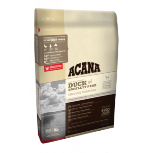 Based on this biological fact, and to produce a nutritional analysis that mirrors the diet Mother Nature would provide for your dog, ACANA Duck & Pear is rich in nourishing protein and fat, while excluding grains, gluten, and long lists of synthetic ingredients found in some dog foods.
