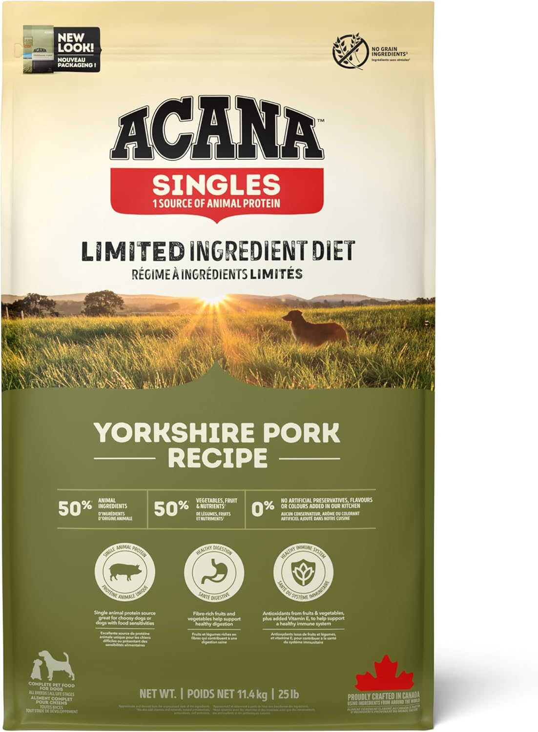 Acana Singles Maiale & Zucca violino è un alimento completo per cani.