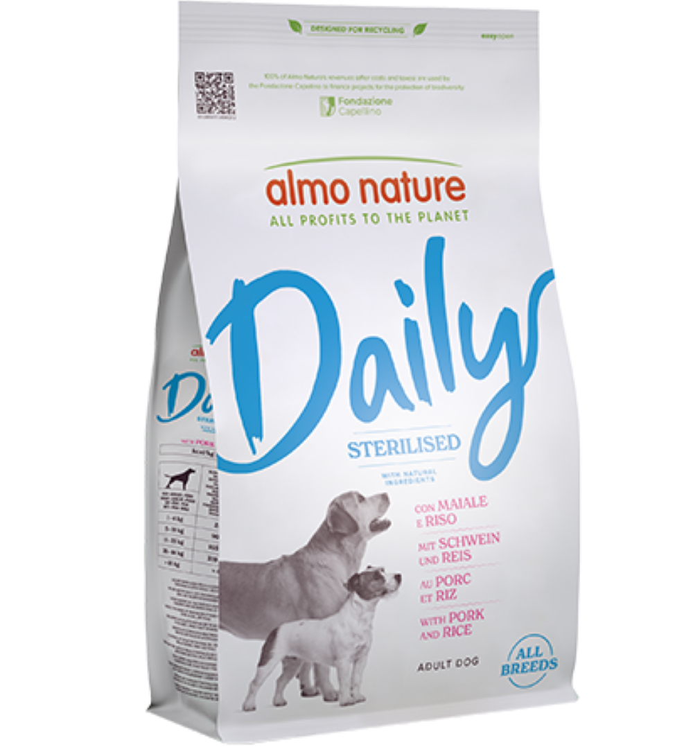 Croccantini Almo Nature Holistic Maintenance per Cani adulti Sterilizzati di tutte le taglie al gusto Maiale con Riso.
