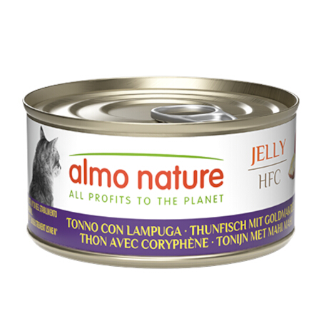 Cucinate semplicemente in brodo, senza additivi chimici o coloranti, grazie alla loro gelatina vegetale costituiscono anche un aiuto per la rimozione dei boli di pelo. Almo Nature suggerisce di alternare le diverse fonti proteiche per assicurare una alimentazione varia e soddisfare i gusti di tutti i gatti, anche quelli più esigenti! La confezione in latta e l'etichetta in carta sono entrambe riciclabili e, se smaltite correttamente, possono essere riutilizzate come materia prima per altri imballi. HFC Jelly – deliziosi filettini di carne o pesce HFC in gelatina – disponibili in lattine da 70 g. Almo Nature è il brand attivista 100% proprietà della Fondazione Capellino.