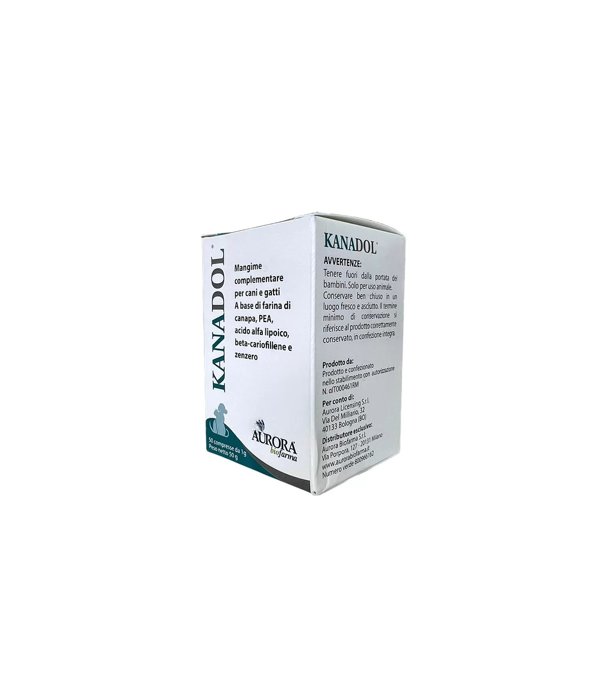 KANADOL:u00a0mangime complementare per cani e gatti utile per la normale funzione del sistema nocicettivo e del sistema endocannabinoide.u00a0n