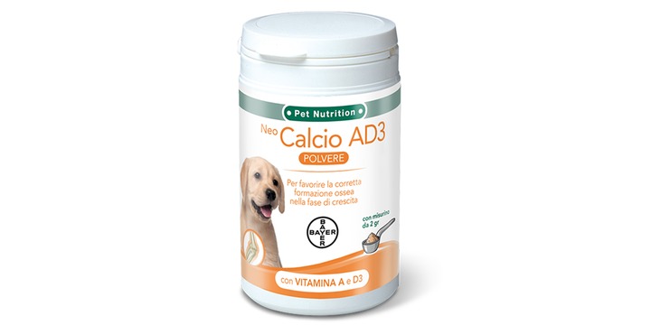 Neo Calcio AD3 è un mangime complementare per cuccioli e cani adulti per favorire la corretta formazione ossea nella fase di crescita e assicura ai cuccioli la quantità di calcio di cui hanno bisogno. È un integratore per cani indicato inoltre per arricchire la dieta in tutti i casi di aumentato fabbisogno di calcio, ad esempio cagne in gravidanza e in lattazione, oppure cani alimentati con una dieta casalinga.