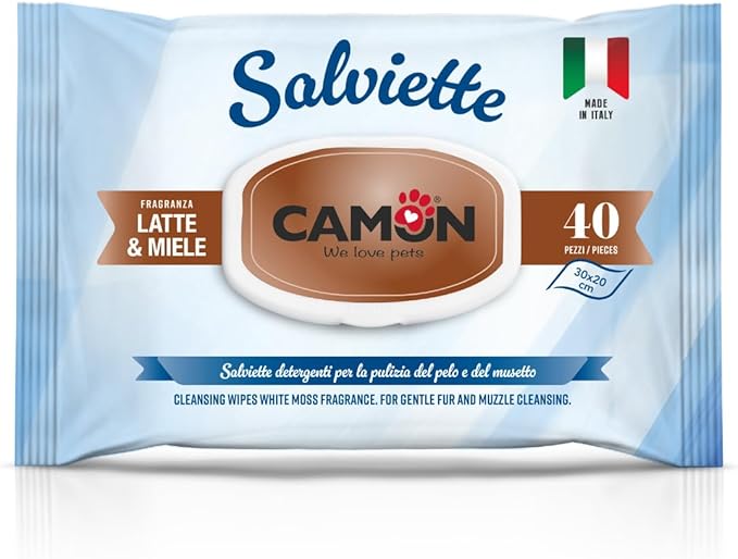 Salviette detergenti per la pulizia del pelo al profumo di mirra. Praticissime salviette detergenti per il vostro animale domestico, da tenere sempre a portata di mano: a casa e in viaggio, per pulire il pelo e le zampe, togliere il cattivo odore,pulire il muso e le orecchie. La loro formulazione con clorexidina (0.3%) igienizza, rinfresca e protegge la cute.
