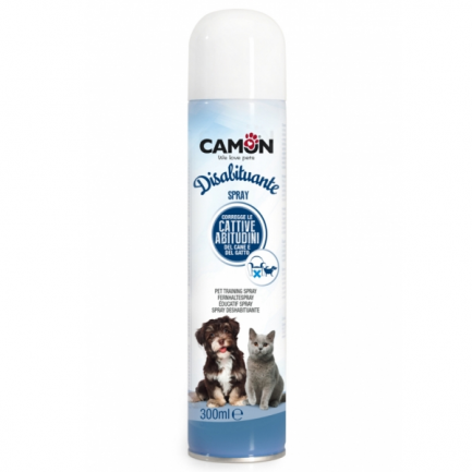 Camon Disabituante Spray 300 ml è un prodotto per interni, efficace per insegnare al vostro cane o gatto le cattive abitudini da evitare. Perfetto su ogni superficie, avverte il vostro animale domestico che quel posto gli è proibito. Bastano poche spruzzate: il vostro amico a quattro zampe imparerà in fretta!