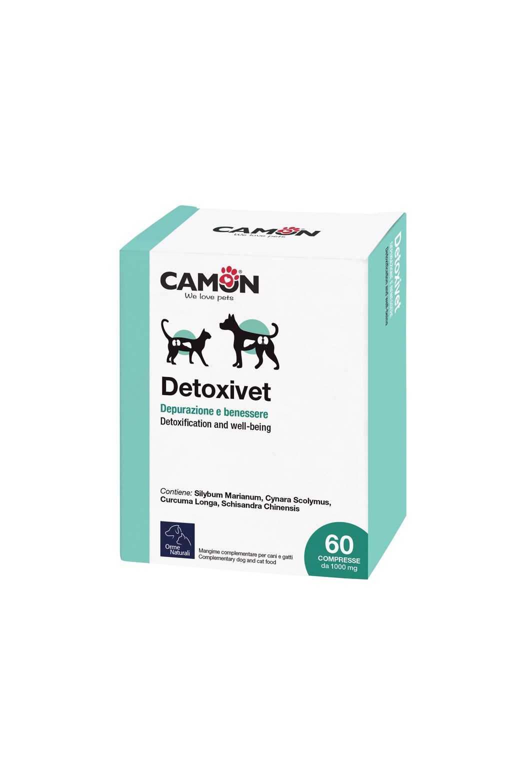 Detoxivet è un mangime complementare per cani e gatti che agisce nella compensazione della cattiva digestione.Gli estratti vegetali contenuti in Detoxivet sono noti per le proprietà depurative, disintossicanti e regolatrici della funzionalità intestinale, nonché di supporto alla funzionalità emuntoria epatica e renale.Quando può essere utile:- durante lunghe convalescenze o patologie croniche in supporto alle terapie farmacologiche- in caso di scarsa qualità delle feci- come sostegno alle terapie farmacologiche in caso di ingestione di sostanze tossiche- in caso di affaticamento epatico- durante cambi di alimentazione o diete mirate alla perdita di pesoDisponibile nelle confezioni da 30 e da 60 compresse.Modo d'uso: 1 compressa al giorno ogni 10 kg di peso dell'animale.