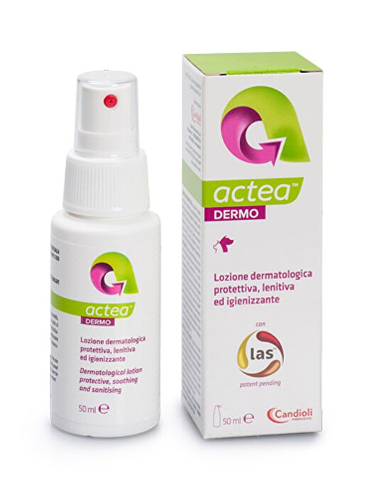 Lozione ad uso dermatologico per cani e gatti indicata come coadiuvante nel trattamento delle condizioni cutanee caratterizzate da prurito, arrossamento, alterazioni del film idro-lipidico e della flora batterica e fungina, anche associate a produzione eccessiva di sebo e cattivo odore. Grazie alle sue proprietà protettive, lenitive ed igienizzanti, Actea® Dermopuò essere anche utilizzato nella prevenzione di affezioni cutanee di varia origine nei soggetti predisposti. Actea® Dermo è in generale consigliato in tutte le situazioni in cui sia necessario preservare o ripristinare lo stato fisiologico della cute.