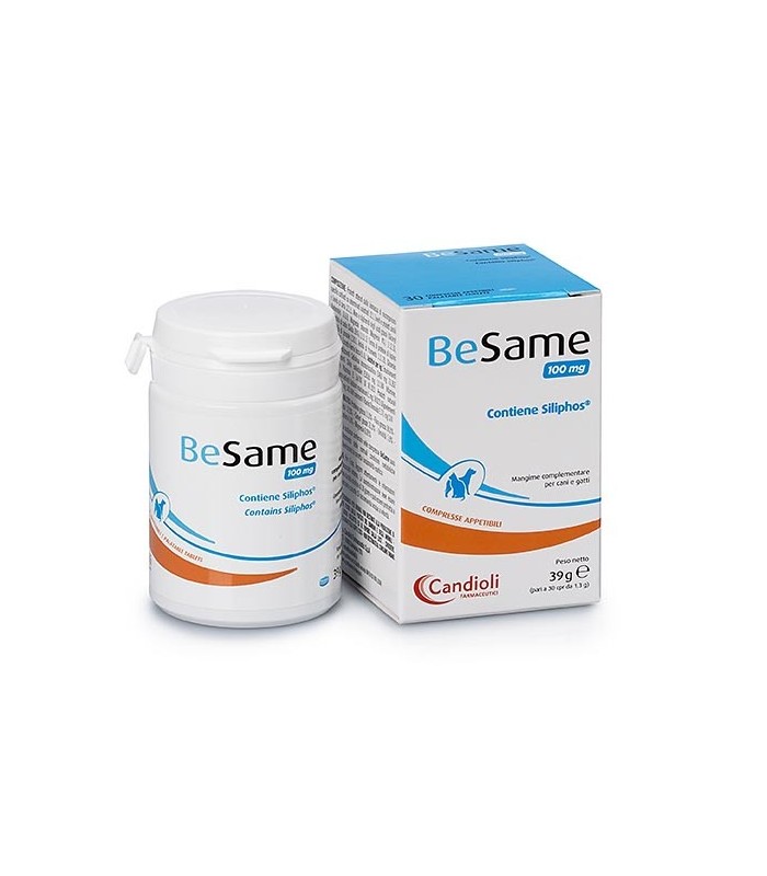 Siliphos® è un innovativo complesso brevettato, che unisce alle note proprietà della silibina, uno dei componenti dell’estratto di Silybum marianum (silimarina) più attivi nel favorire la corretta funzionalità epatica, l’azione della fosfatidilcolina, che ne facilita un più rapido e completo assorbimento intestinale, fino a 4 volte rispetto alla normale silibina. I derivati fermentativi contenuti nelle compresse BeSame apportano una idonea quantità di sostanze in grado di normalizzare e mantenere le difese antiossidanti e disintossicanti del fegato, esercitando così effetti benefici nell’animale.