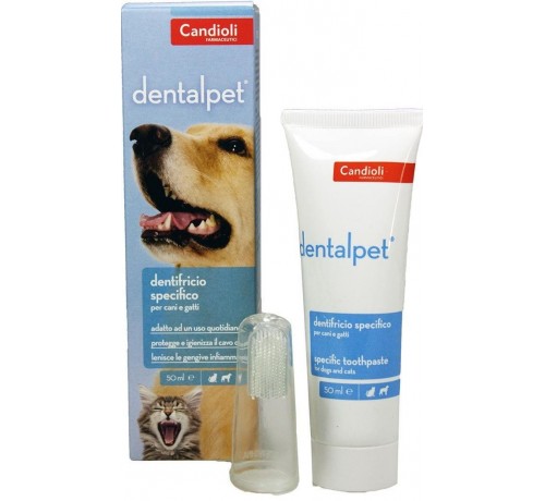 Dentifricio specifico per cani e gatti ad elevata adesività. I suoi principi attivi (Zinco citrato, Triclosan, Estratto di Ginkgo biloba, Estratto di Malva sylvestris e Monofluorofosfato di sodio) lo rendono ideale per l' igiene orale quotidiana dei piccoli animali. DentalPet agisce infatti come lenitivo ed emolliente sulle gengive, rinforza lo smalto dei denti e potenzia le naturali difese del cavo orale. Il suo utilizzo continuativo costituisce un efficace strumento per prevenire l' insorgenza di infiammazioni del cavo orale, e rappresenta un valido metodo per il controllo dell' alitosi.