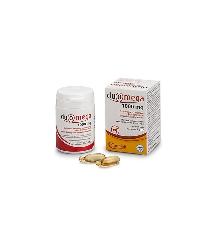 ? possibile suddividere la razione giornaliera complessiva in due somministrazioni. Aprire la capsula e miscelarne il contenuto alla consueta razione alimentare. La capsula pu? anche essere somministrata intera direttamente all'animale. La somministrazione di Duomega 1000 mg cani pu? essere protratta per lunghi periodi di tempo.