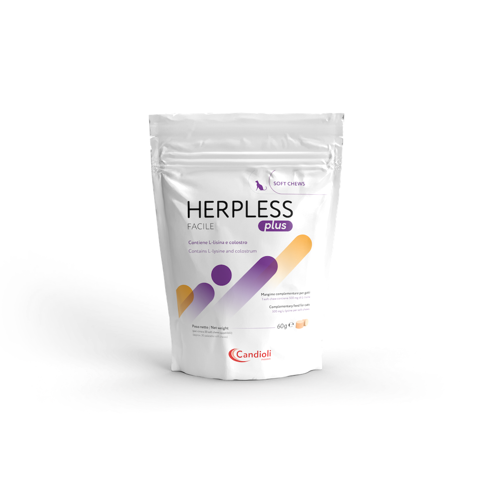 Fornisce un elevato livello di L-lisina (500 mg/soft chews), che è un inibitore competitivo di L-arginina.