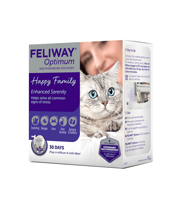 FELIWAY Optimum Diffusore contiene un nuovo complesso di Feromoni Felini in grado di inviare messaggi sempre più completi, precisi ed efficaci per aiutare i gatti a sentirsi a proprio agio e sicuri a casa, fornendo loro rassicurazione e garantendo l'armonia fra gatti conviventi.