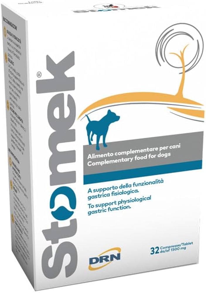 Stomek® compresse - Alimento complementare per cani a supporto della funzionalità gastrica fisiologica. Supporto rivoluzionario ed innovativo che aiuta a contrastare la nausea, l'iperacidità gastrica e la sintomatologia della gastrite.