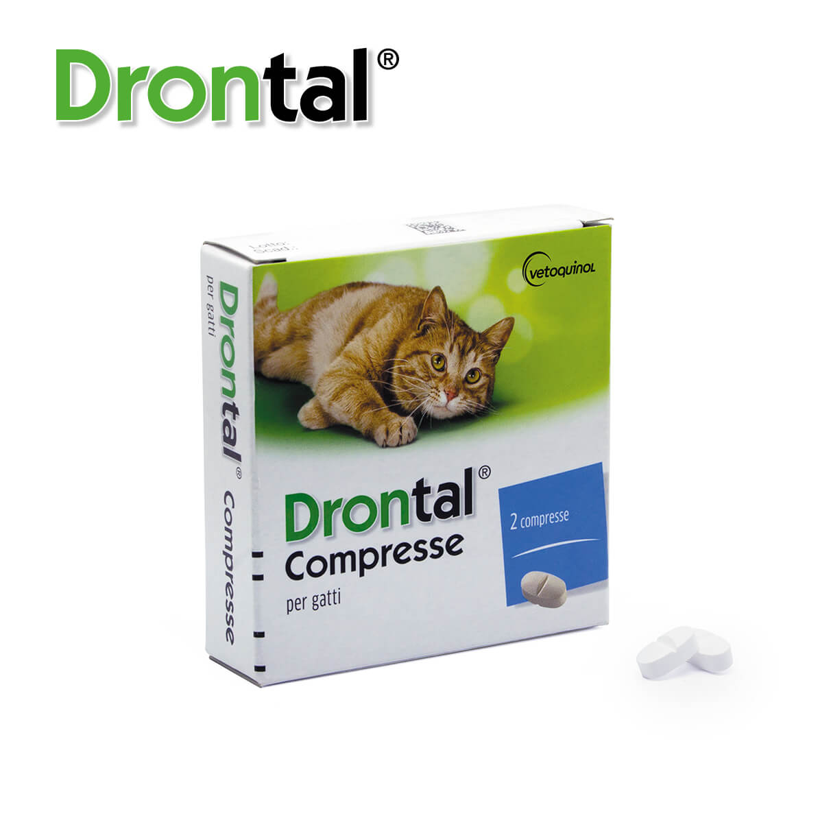 Impiego durante la gravidanza, l'allattamento o l'ovodeposizione.Drontal non deve essere impiegato durante la gravidanza.Sovradosaggio (sintomi, procedure d'emergenza, antidoti) se necessario Sintomi di sovradosaggio non si evidenziano con dosi fino a 5 volte la dose raccomandata. Il primo sintomo atteso di intossicazione è il vomito.