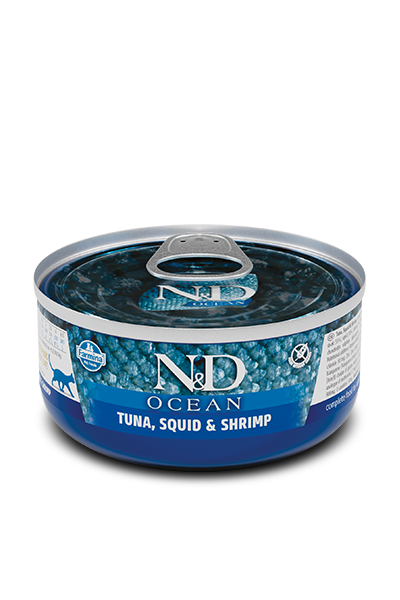 • Farmina N&D Ocean 80 gr Tonno Calamaro e Gamberetti Umido Gatto in Gatti