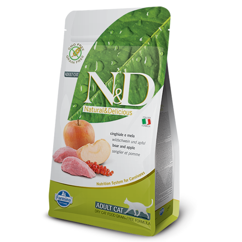Farmina n&d grain free gatto cinghiale e mela è un alimento completo per gatti adulti.