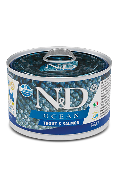 trota (25%), filetto di salmone (20%), filetto di merluzzo, aringhe, patate dolci, gamberetti, olio di pesce, fruttooligosaccaridi, cloruro di colina, condroitina solfato, glucosamina, vitamine, minerali.
