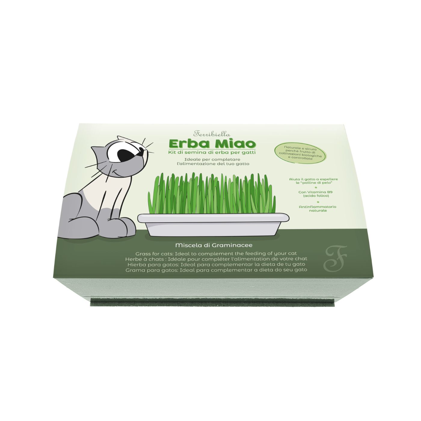 Ferribiella Erba Gatta Miao, miscela di graminacee ideale per completare l’alimentazione del tuo gatto.Serve per ricavare l’acido folico, fondamentale nella produzione di emoglobina.Aiuta il gatto ad espellere le palline di pelo ingurgitate durante la pulizia.Anti-infiammatorio naturale per infezioni a gola ed intestino.Naturale e sicuro, perchè frutto di coltivazioni biologiche controllate.Completo di semi e terriccio.