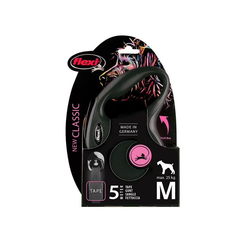 Guinzaglio avvolgibile a fettuccia flexi New Classic M per cani < 25 kg, allungabile fino a 5 m, con fettuccia che non resta impigliata, sistema frenante intuitivo, personalizzabile con accessori.