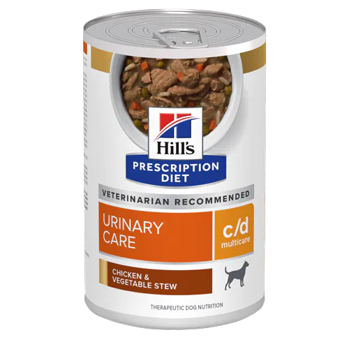 Lo spezzatino Hill's Prescription Diet%u2122 c/d Multicare è un alimento dietetico completo per aiutare a ridurre le recidive e per facilitare la dissoluzione dei calcoli di struvite nei cani adulti.