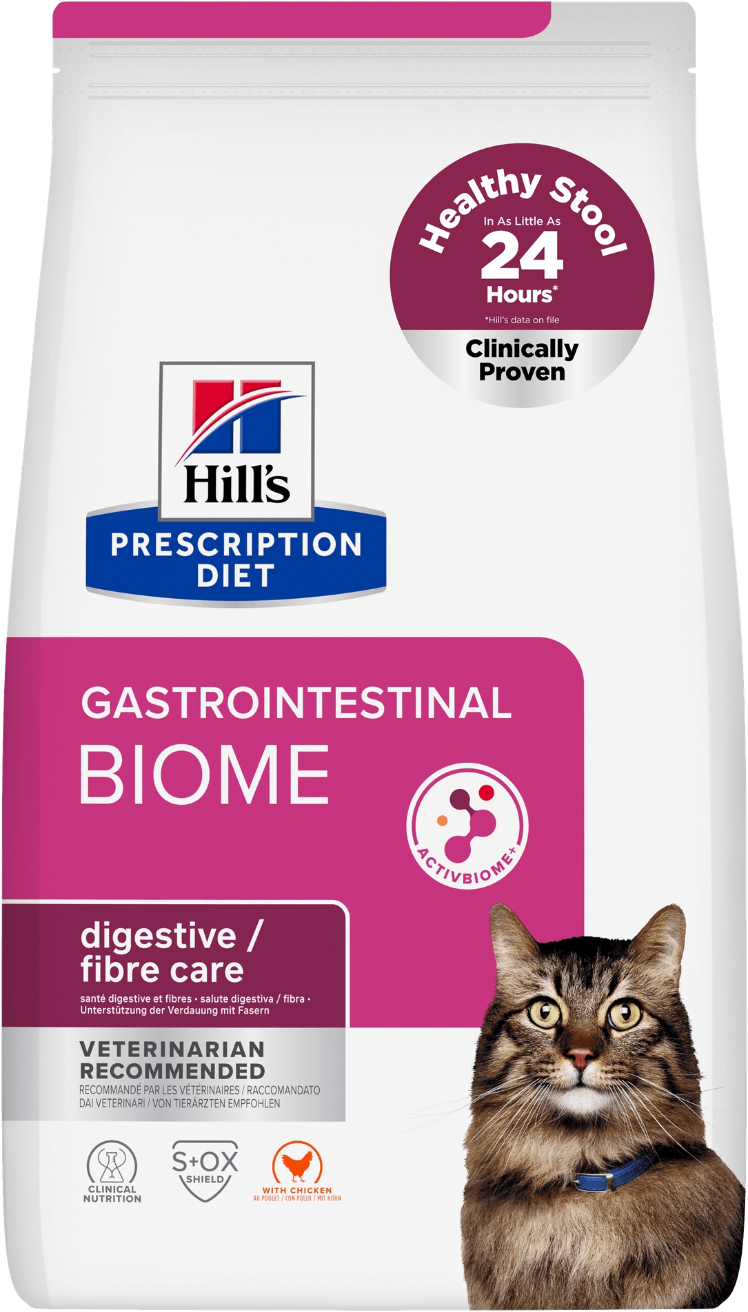 Secco dietetico per gatti adulti Hill' s Prescription Diet Gastrointestinal Biome con pollo, speciale mix di fibre, acidi grassi Omega3, a supporto della digestione e di un' evacuazione sana e regolare.