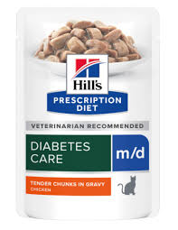 Hill's Prescription Diet m/d con Pollo è un alimento dietetico completo per gatti.