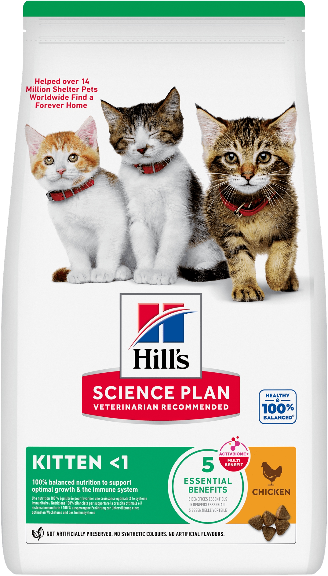 Hill’s Science Plan Kitten alimento secco per gatti con pollo è un alimento sano e bilanciato al 100%. Contiene la tecnologia ActivBiome+ Multi-Benefit, una miscela di fibre prebiotiche e antiossidanti, che favorisce la salute dell’apparato digerente e il benessere generale del tuo gatto nel corso della sua vita. Un’alimentazione basata sulla scienza per favorire una vita lunga e sana. Vantaggi principali: