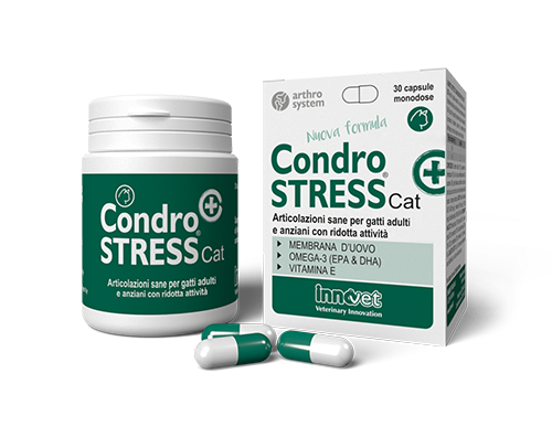 Condrostress (+) Cat è indicato per la protezione articolare in gatti di qualsiasi età affetti da osteoartrite. Nei soggetti anziani, in particolare, preserva la capacità di movimento e migliora di conseguenza la qualità di vita.