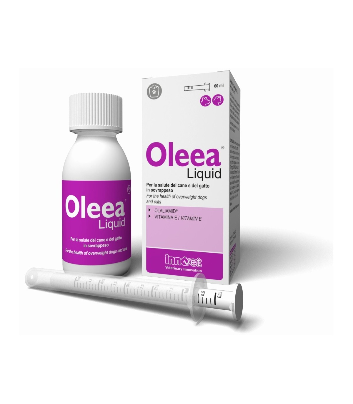 Oleea® Liquid aiuta il cane e il gatto a mantenere l’omeostasi del tessuto adiposo attraverso il supporto del sistema endocannabinoide. Il prodotto va utilizzato nell’ambito di una sana ed equilibrata alimentazione e una corretta attività fisica.