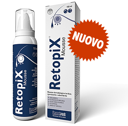 Retopix Mousse può essere utilizzato in combinazione con gli altri prodotti a base di Adelmidrol della linea Retopix (Spray, Fluido, Oto).