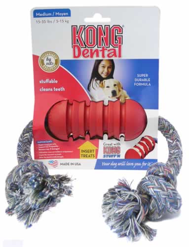 Realizzato con la stessa gomma resistente del nostro KONG ClassicPerfetto per il riempimento con snack KONG Stuff' N o pasta Easy TreatLa versione in corda è ideale per la pulizia dei denti