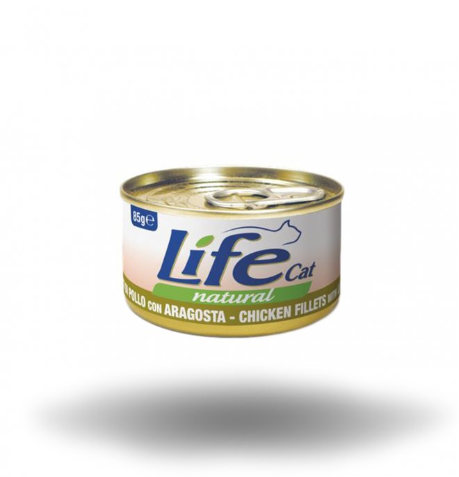 Filetti di vero petto di pollo presenti in grande quantità, con aggiunta di pregiata aragosta. Il tutto cotto al vapore e conservato in acqua di cottura, senza coloranti conservanti o additivi. E’ un alimento ricco di proteine e povero di grassi e carboidrati, nel rispetto delle esigenze nutrizionali del gatto. Inoltre, la presenza dell’aragosta conferisce un gusto delicato.