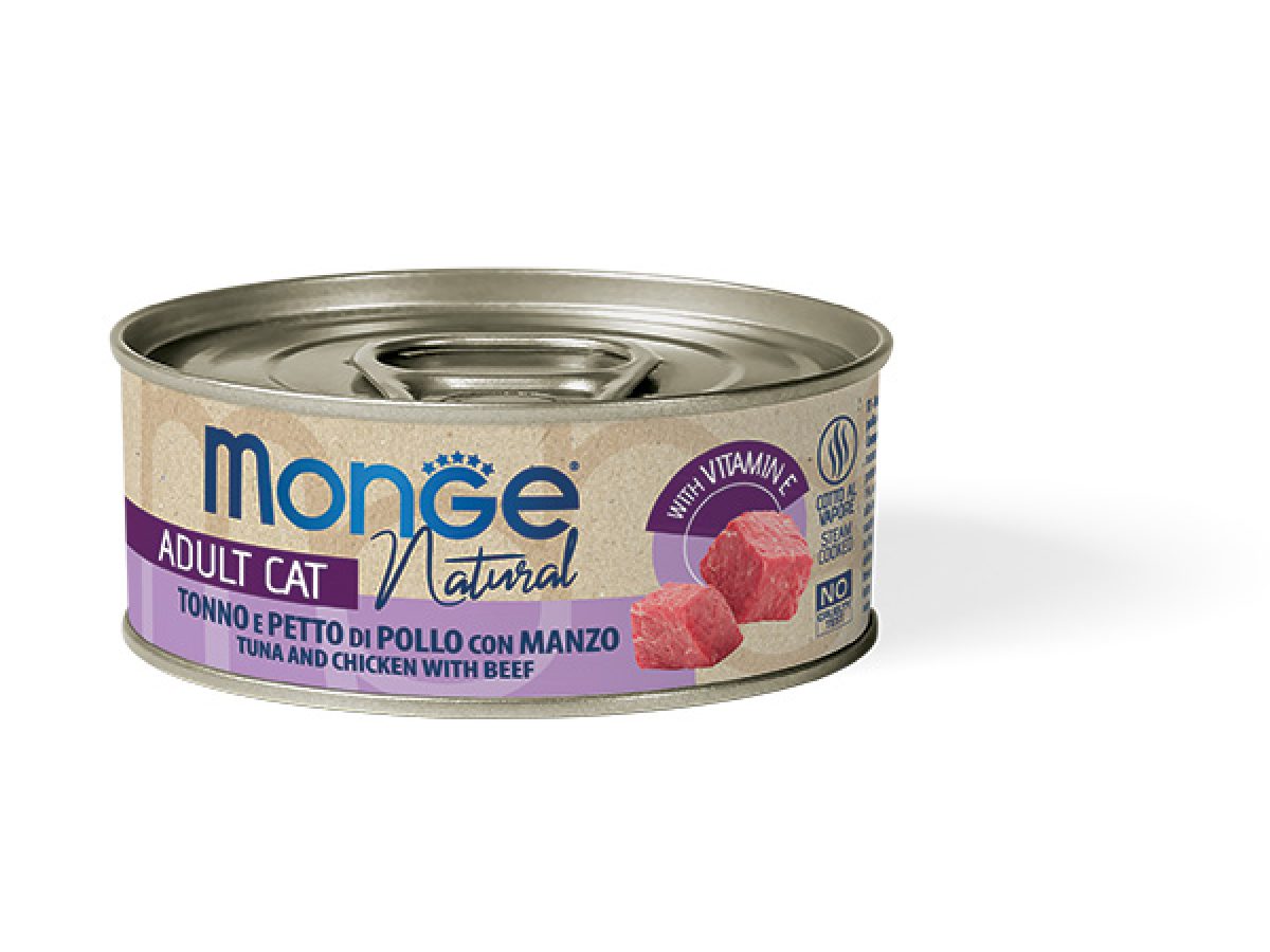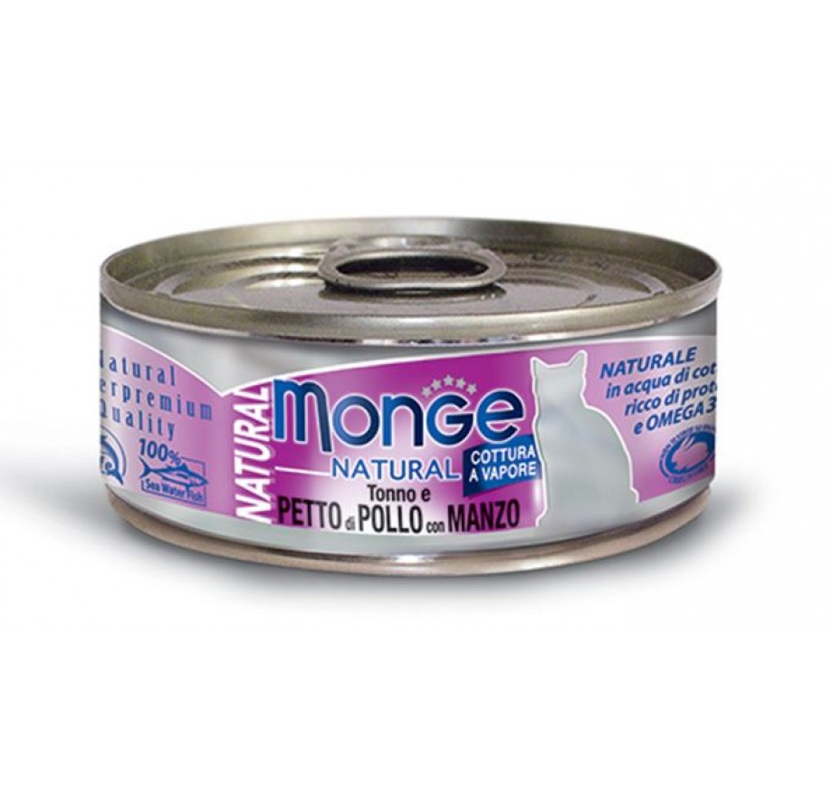 Monge Cat Natural Superpremium 80 gr Tonno e petto di Pollo con Manzo Scatoletta Gatti