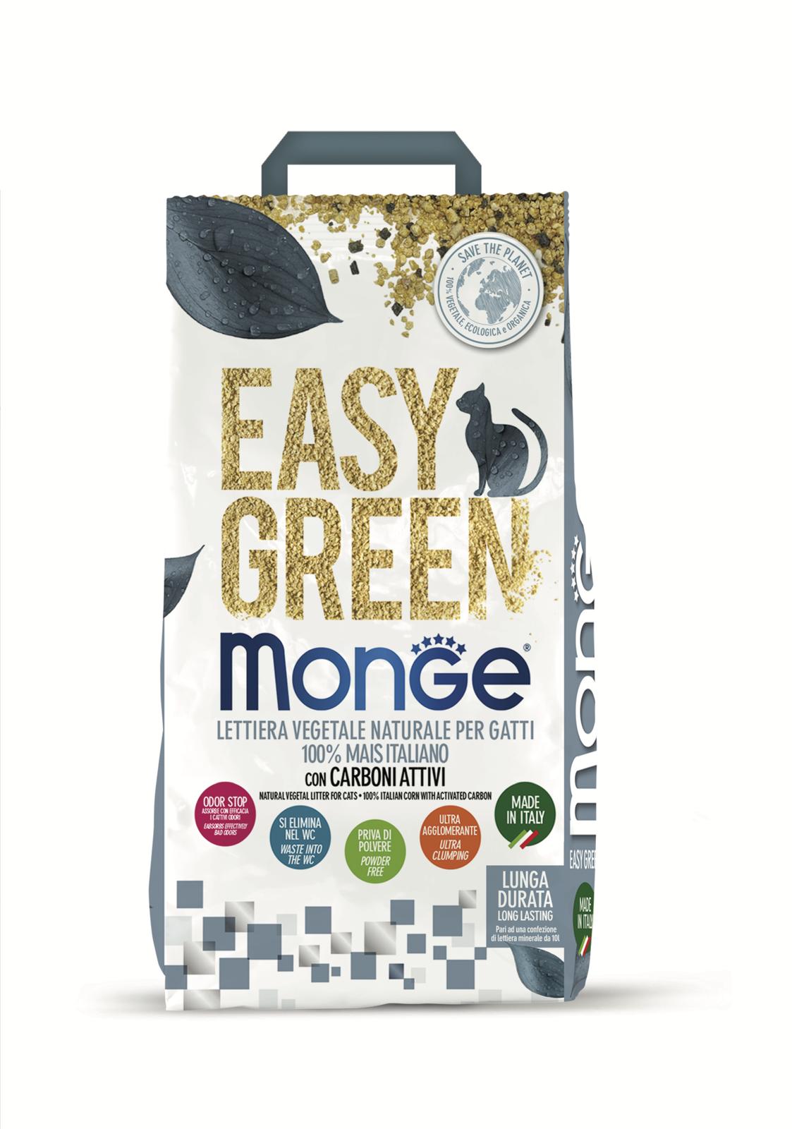 Monge Lettiera Agglomerante Vegetale Easy Green Con Carboni Attivi 10 lt 3,8 kg