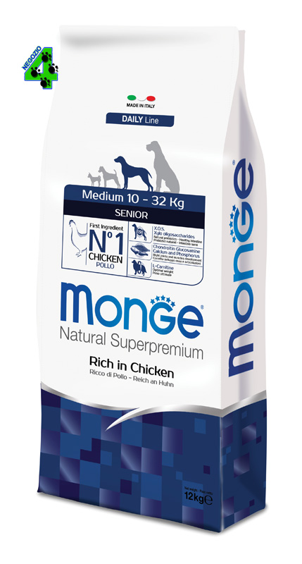 Le crocchette Monge Natural Superpremium Medium Senior con Pollo sono un alimento completo per cani di taglia media in età avanzata.