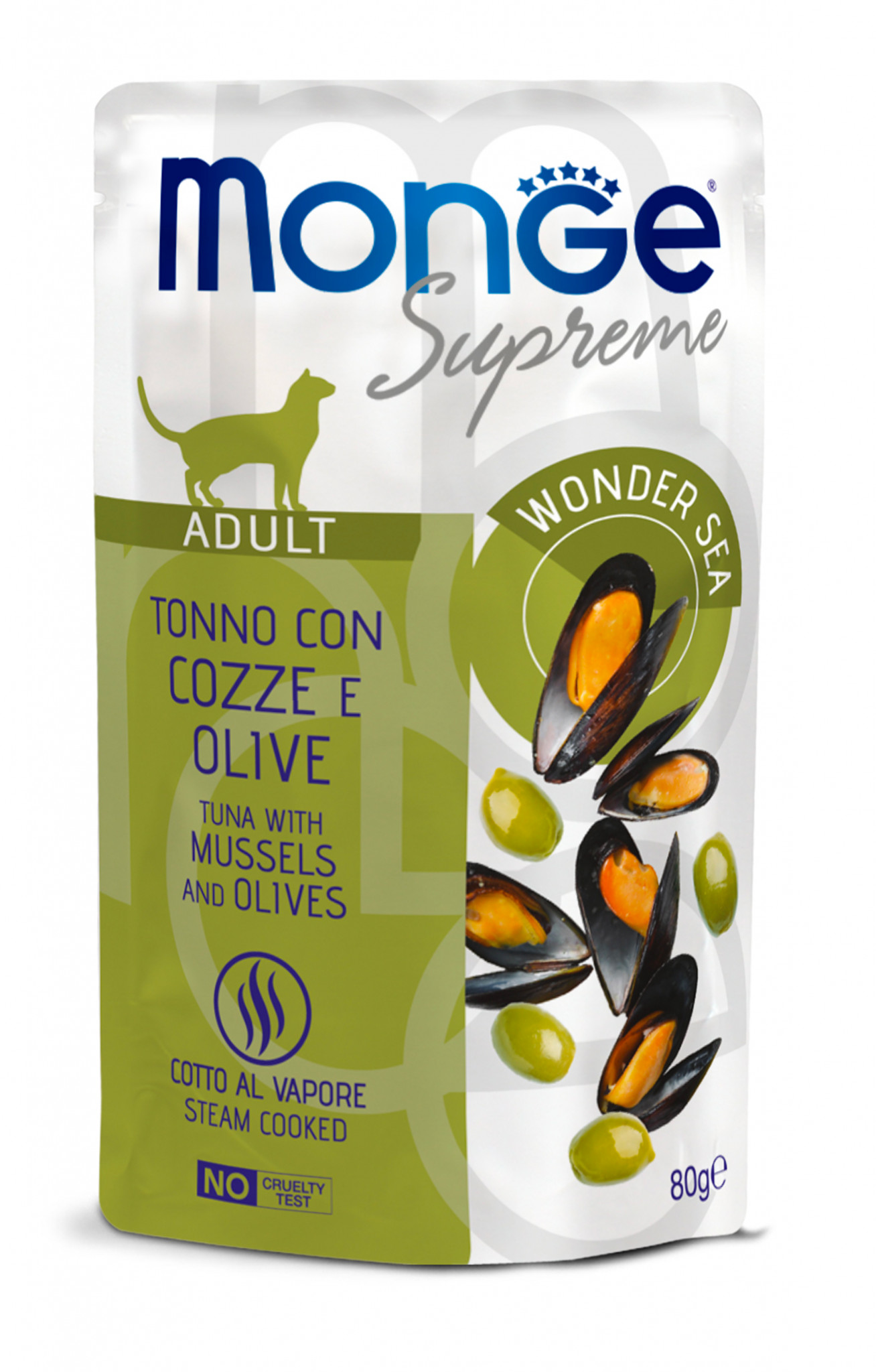Monge Supreme Adult Tonno Cozze Olive 80 gr Bustina Gatto