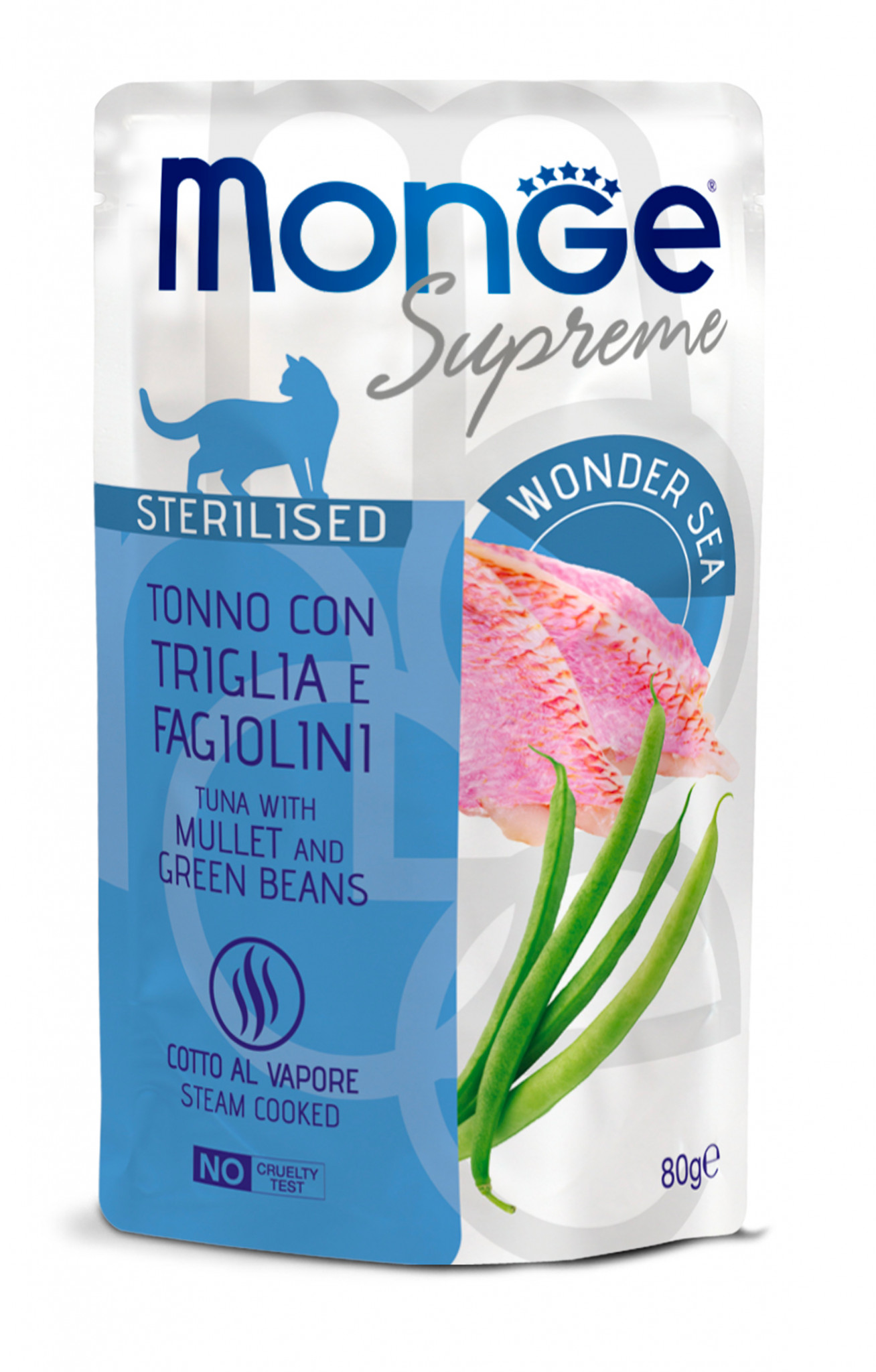 Monge Supreme Sterilised Tonno Triglia Fagiolini 80 gr Bustina Gatti