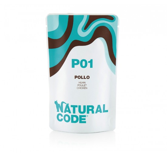 NATURAL CODE P01 POLLO BUSTA ? un alimento complementare per gatti adulti.Il pollo ? una fonte di proteine di elevato valore biologico ed ? inoltre estremamente digeribile per il gatto.In questa referenza al pollo viene aggiunta una piccola percentuale di riso, altro alimento facilmente digeribile e fonte di energia.COMPOSIZIONE58% CARNE DI POLLO 2% RISONote: Acqua di cottura pari al 40% della ricetta.COMPONENTI ANALITICIUmidit? 80,68%Proteina Grezza 17,07%Ceneri Grezze 0,58%Oli e Grassi Grezzi 0,46%Fibra Grezza 0,12%Energia (Kcal/100g) 67,42"CONFEZIONE: BUSTA 70g