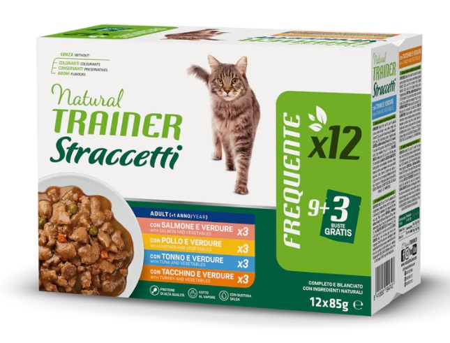 Natural Trainer Adult Cat Straccetti Multipack 12 bustine 85 gr Umido Gatti