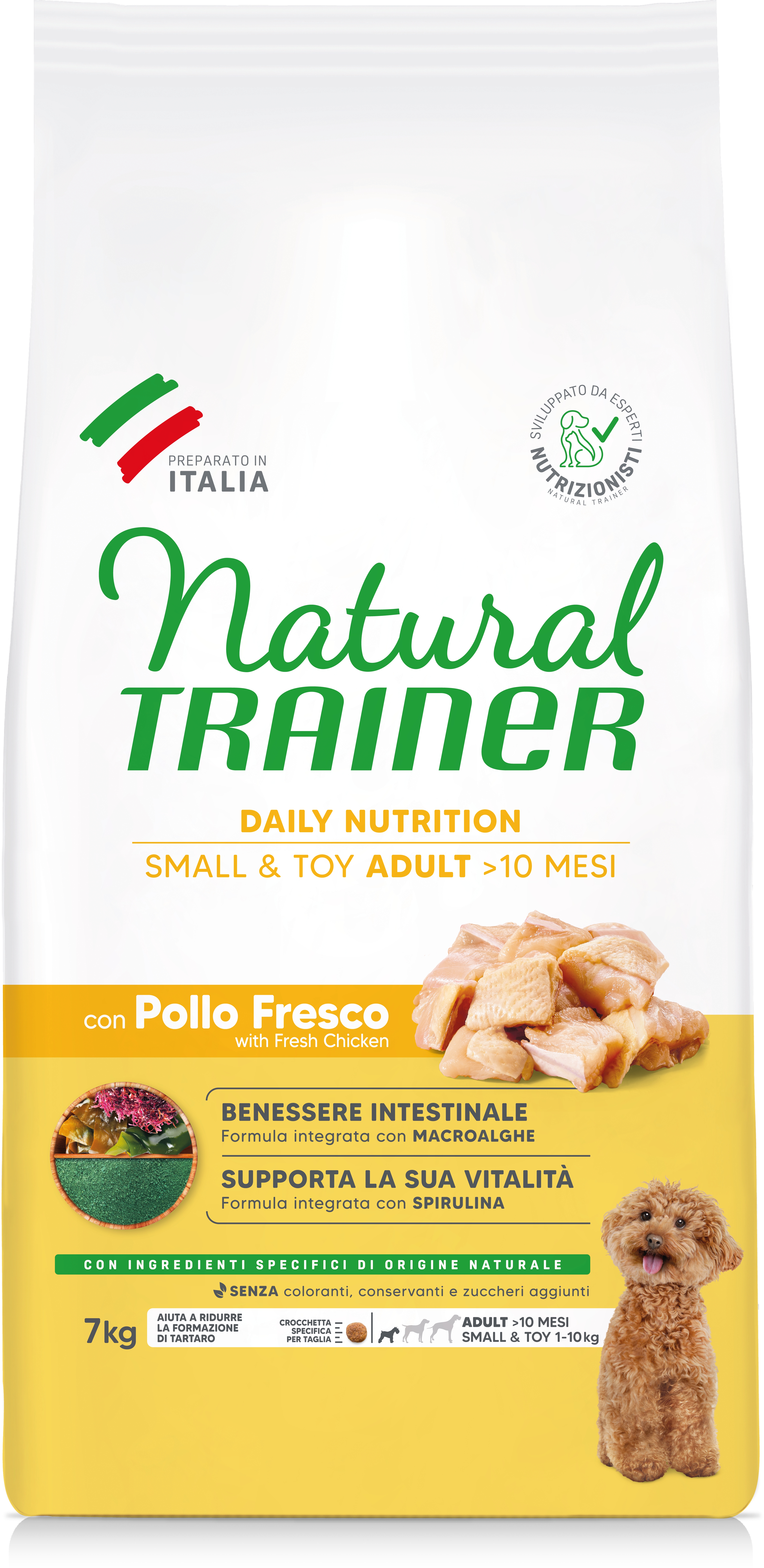 Ingredienti: Mais, carne disidratata di pollo e tacchino, riso 12%, carne fresca di pollo e tacchino 10% (di cui pollo 30%), strutto, proteine idrolizzate di pollo, polpe di barbabietola, semi di lino, farina di pesce disidratato, fibra di pisello, cloruro di sodio, lievito di birra, carbonato di calcio, cozza verde (Perna canaliculus) 0,01%, alga spirulina (Arthrospira platensis), AppleZin%u2122 estratto secco di mela 0,0025%.
