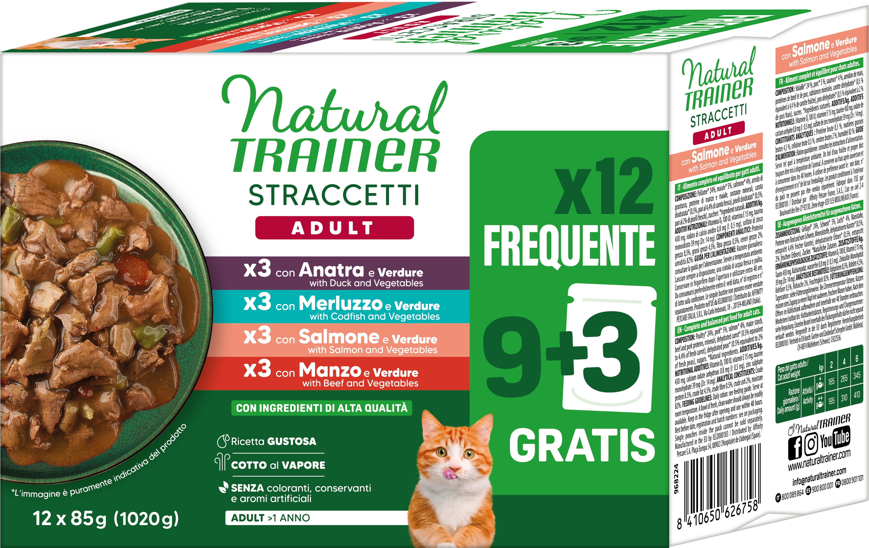 Natural Trainer Adult Cat Straccetti Multipack 12 bustine 85 gr Umido Gatti
