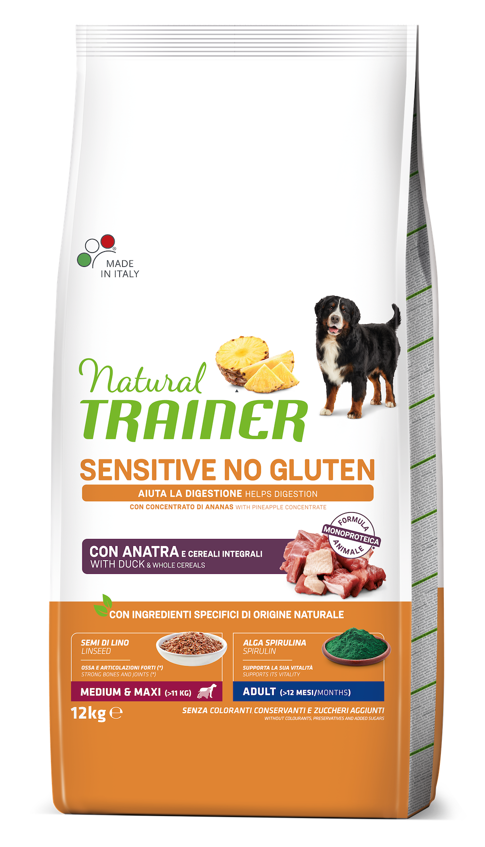 Natural Trainer Fitness Sensitive Adult Medium Maxi No Gluten Anatra e Cereali Integrali 12 kg