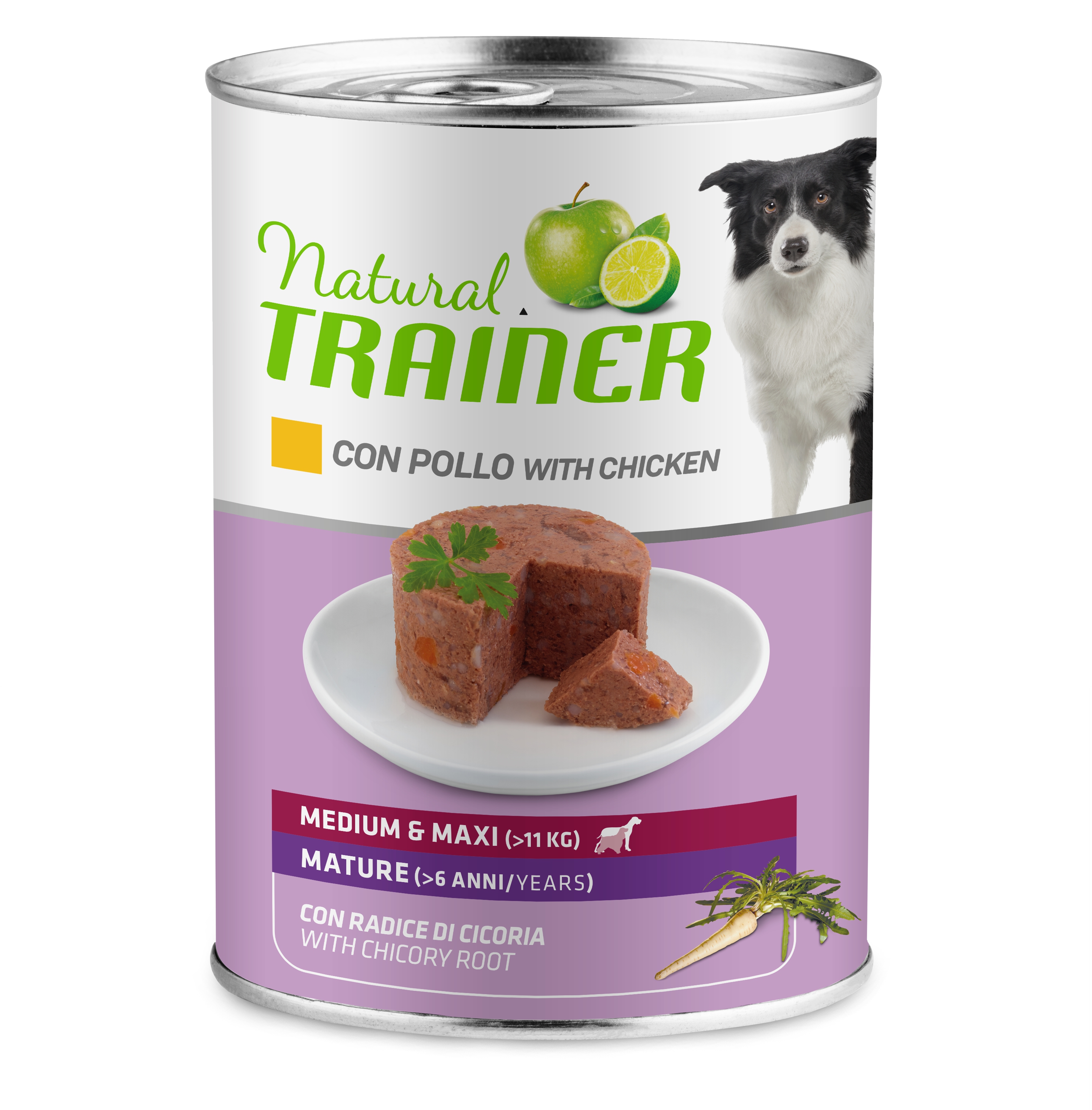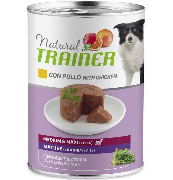 Trainer Natural Maturity Cane Medium al Pollo 400 gr. è un alimento formulato per cani adulti di taglia media oltre i 6 anni. È un alimento funzionale, prodotto con ingredienti rigorosamente controllati e di elevatissima qualità. Integrato con estratto di fagiolo bianco per ridurre l' assorbimento dei carboidrati.