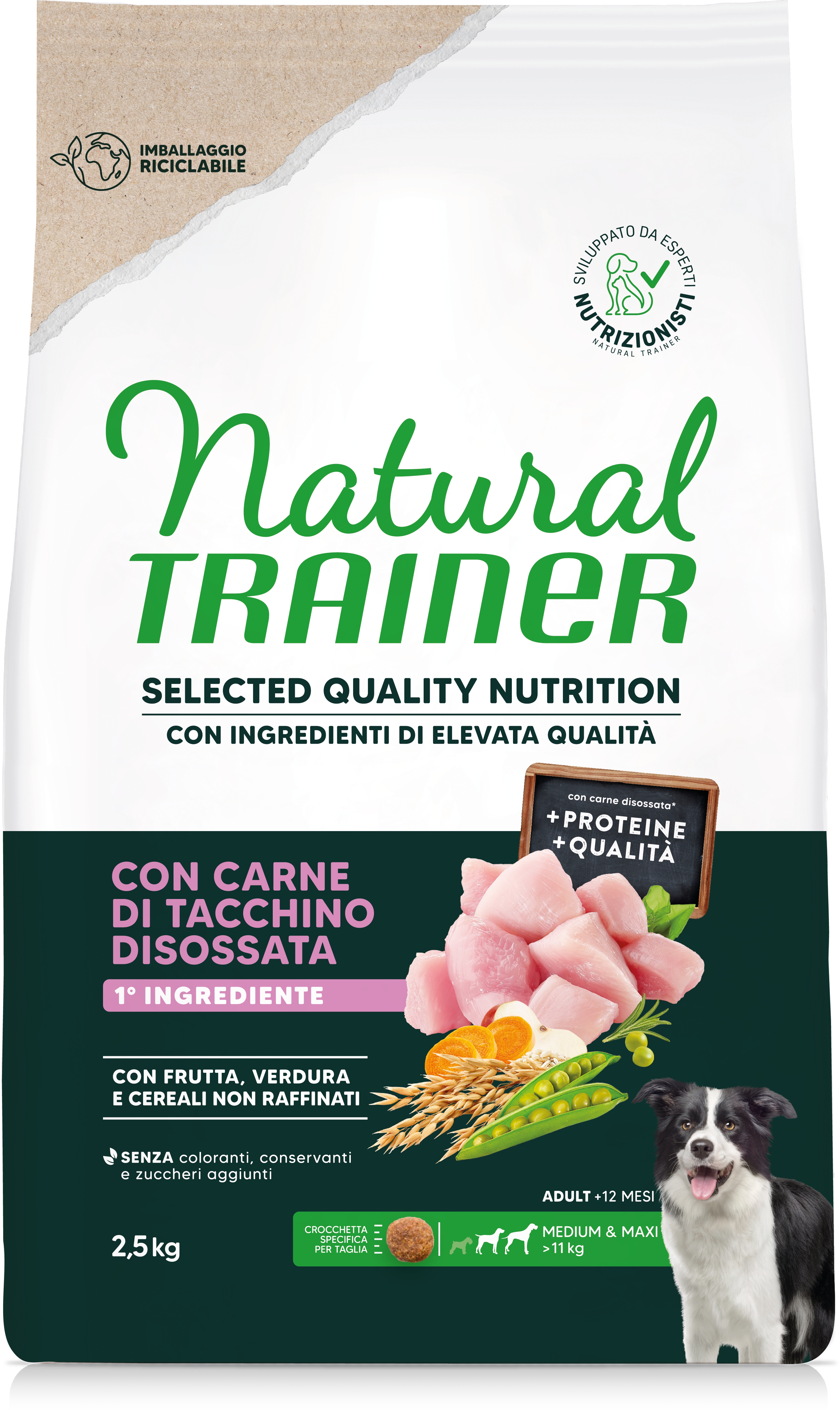 Natural Trainer Selected Quality Nutrition Cane Healthy Grain Medium/Maxi Tacchino 2,5kg