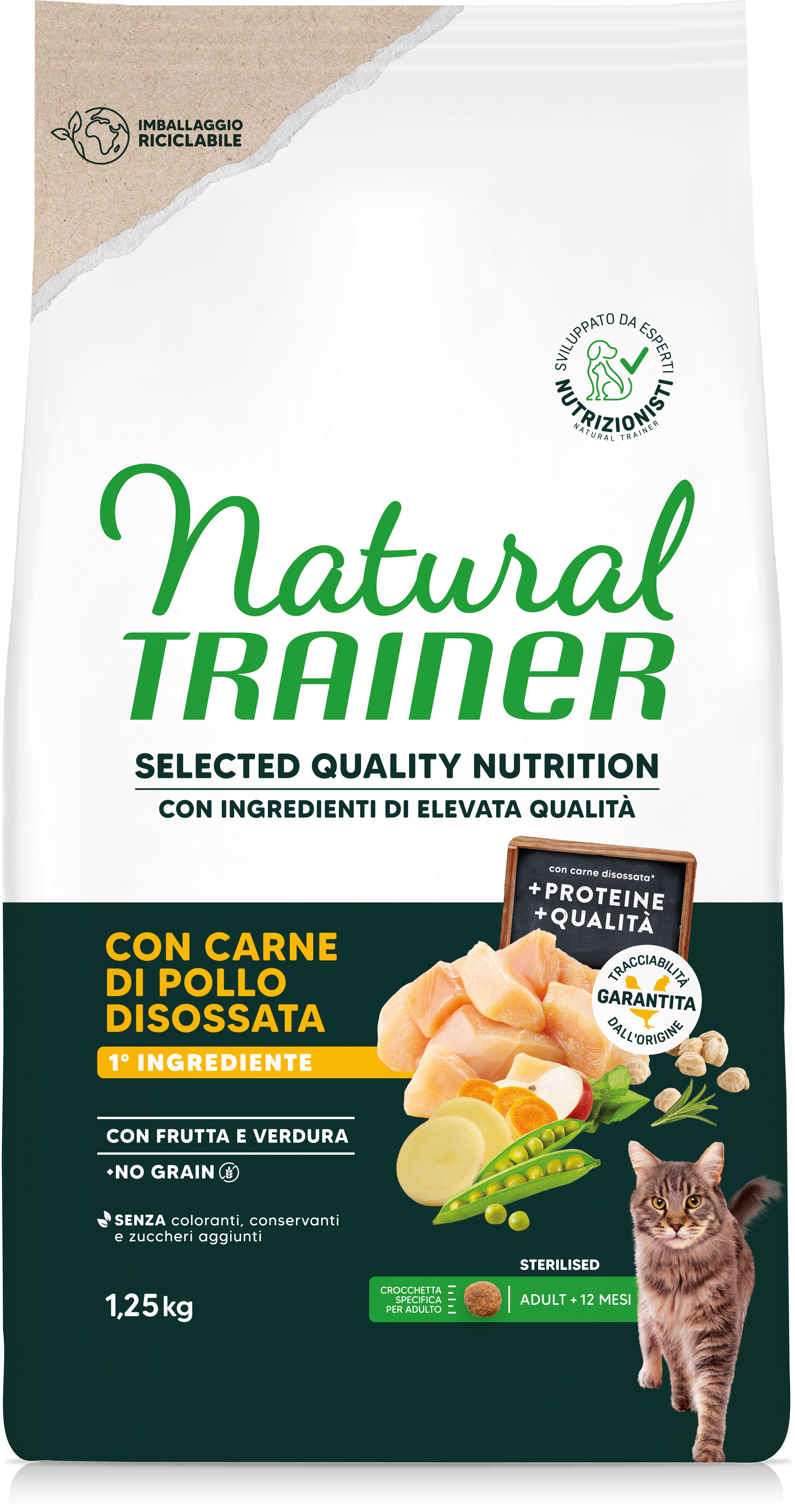Natural Trainer Selected Quality Nutrition Gatto No Grain Sterilised Pollo 1,25kg