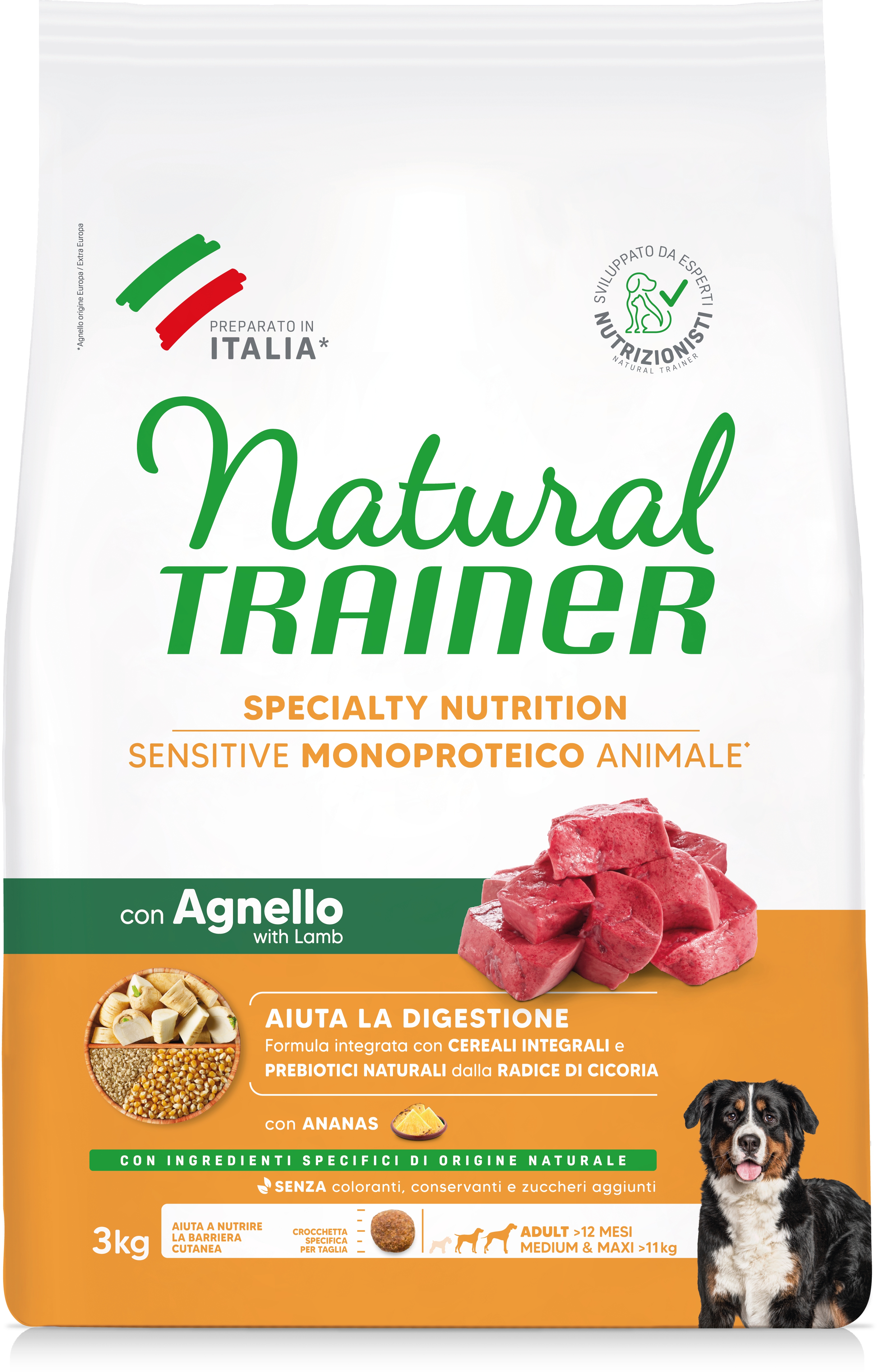 Nova Foods Trainer Fitness 3 Adult Medium/Maxi Lamb & Rice è un alimento monoproteico calibrato sul fabbisogno nutrizionale dei cuccioli di media e grande taglia, che presentano allergie o intolleranze alimentari, oppure che seguono diete speciali.