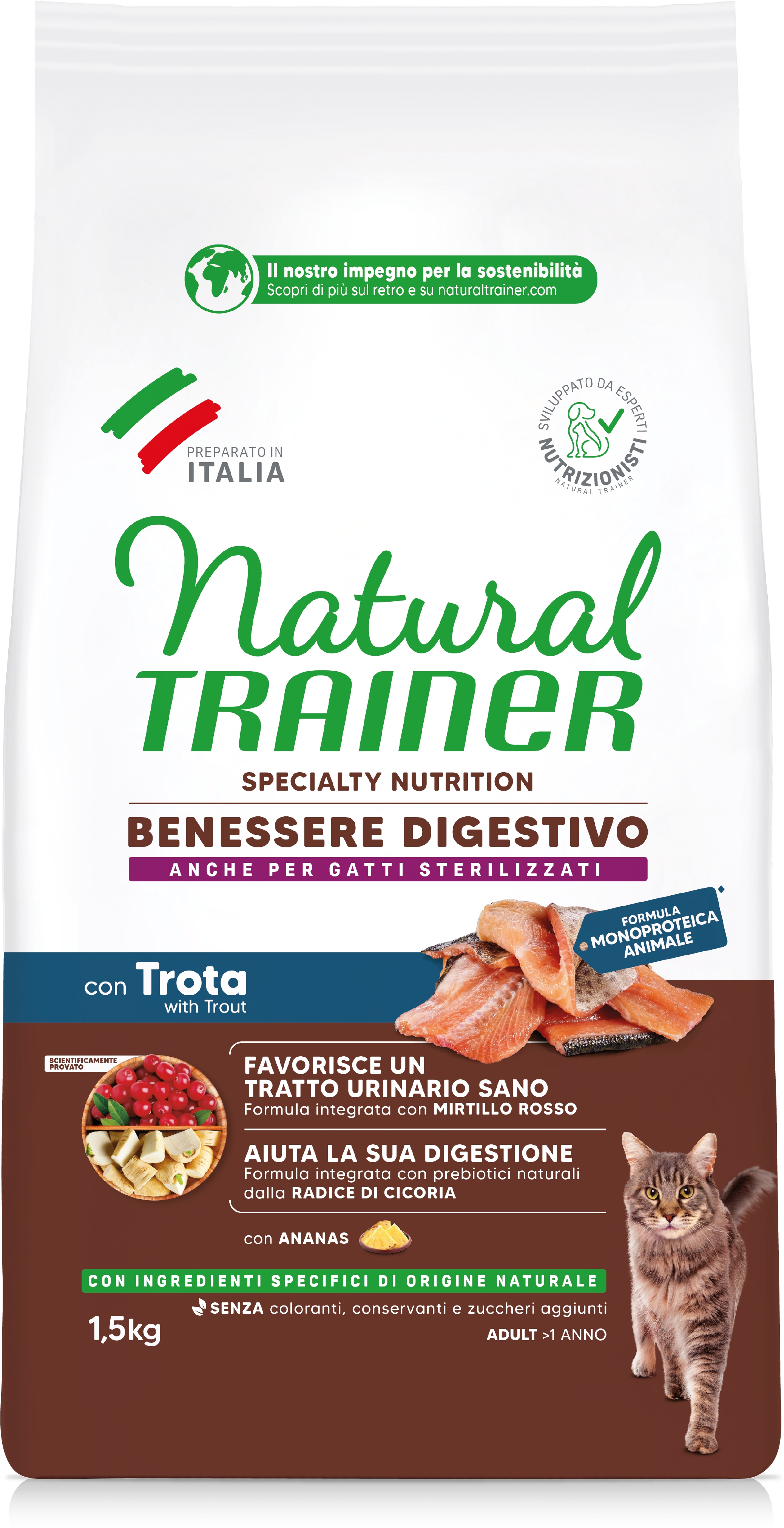 Natural Trainer Sensitive No Grain Trota 1,5 kg Crocchette Per Gatti