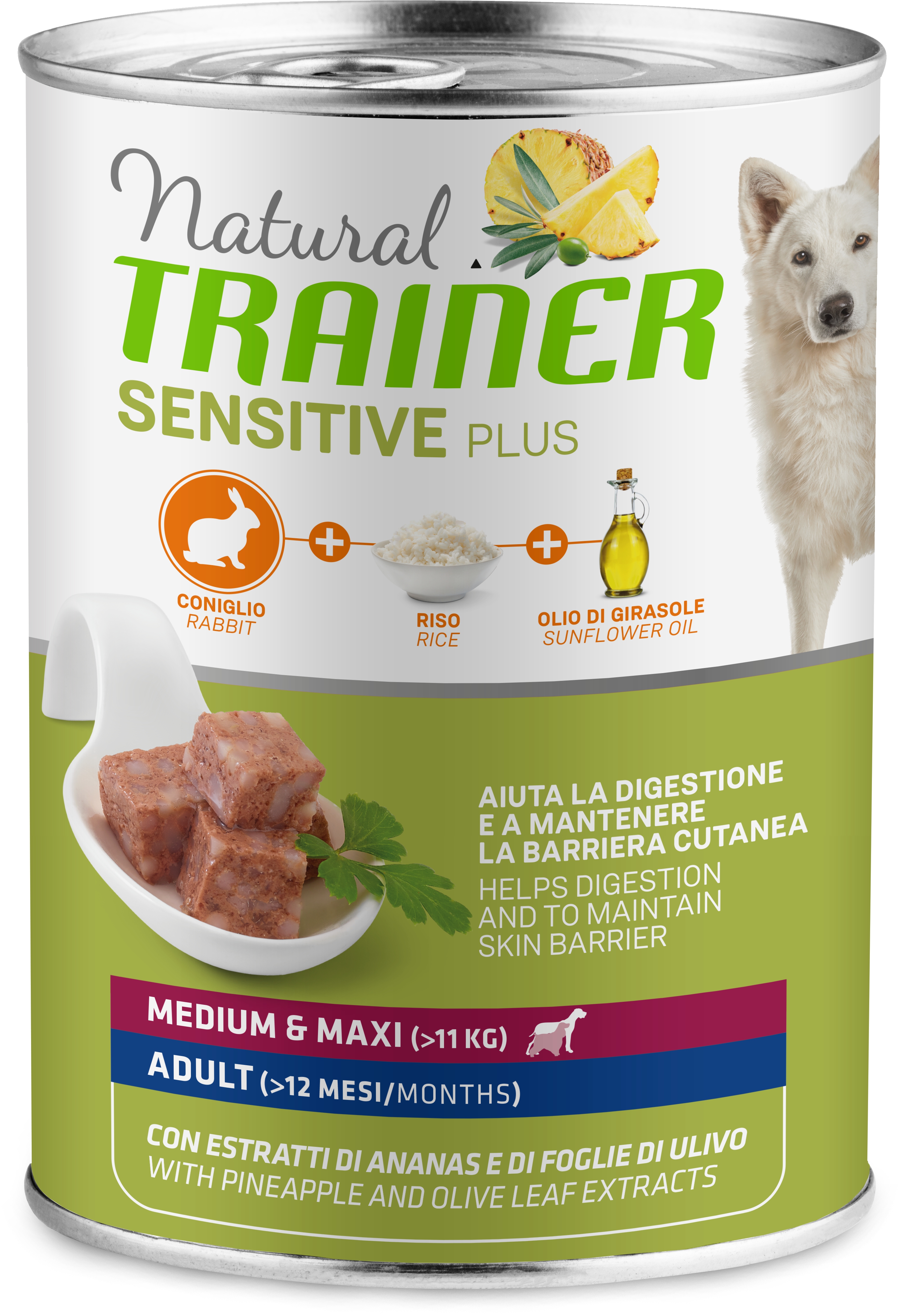 La sua formula adattata contenente ingredienti altamente digeribili, cereali integrali e concentrato di ananas 100% naturale aiuta la funzionalità digestiva. È formulato con una singola fonte di proteine animali (coniglio).
