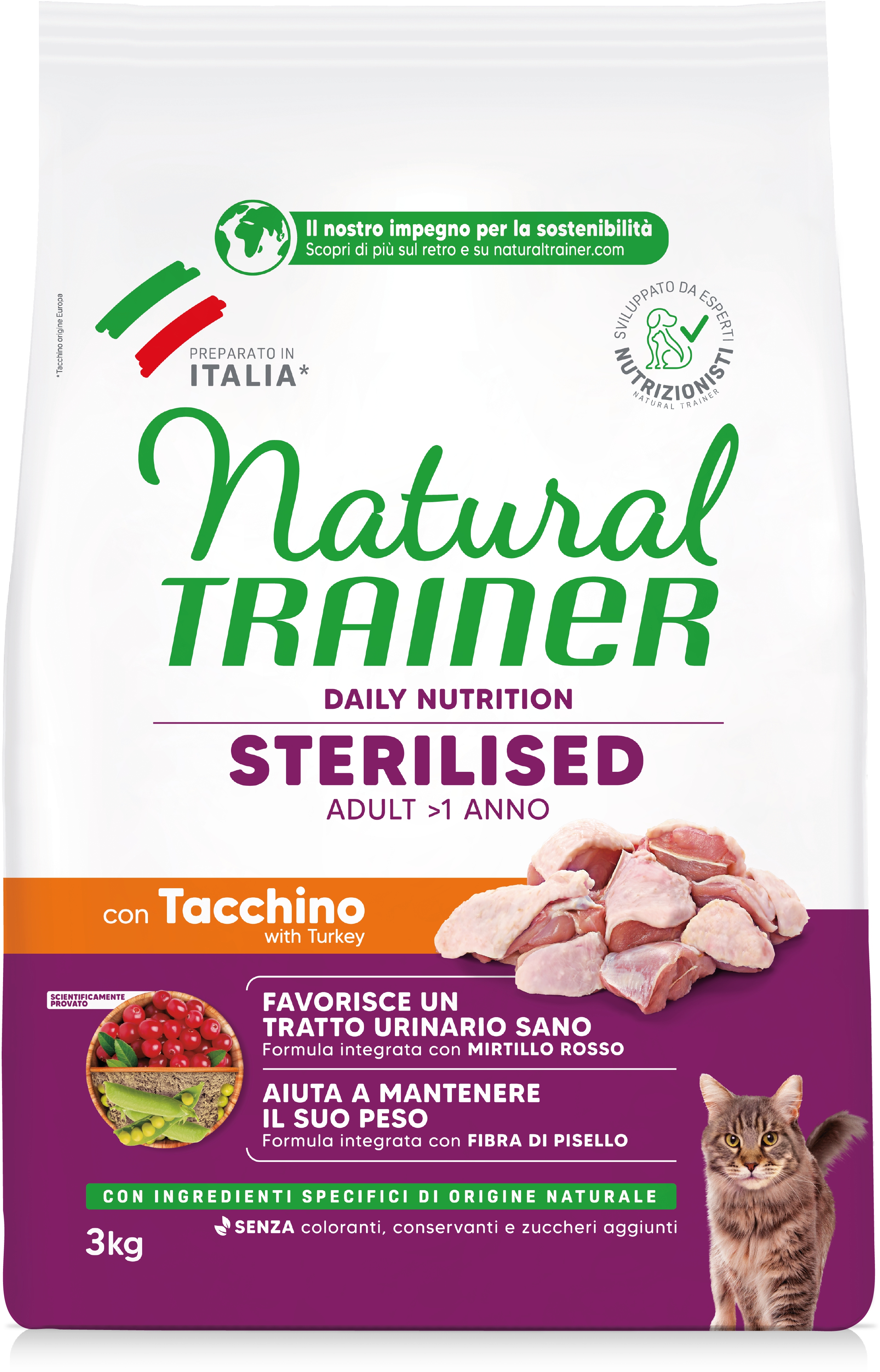 Recensioni per Natural Trainer Sterilised Carni Bianche 3 kg Gatto