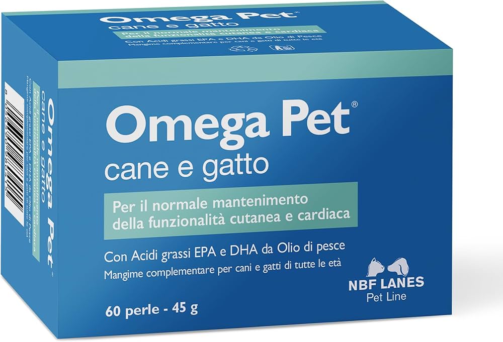 La prima confezione con 120 perle ad alta dose di EPA e DHA (Omega 3 a lunga catena), per le patologie croniche di cani e gatti